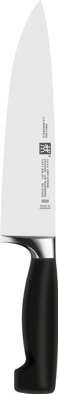 WŁAŚCIWOŚCI:ami tnącymi oraz klasycznym designem, stosowanym przez ZWILLING już od wielu lat. Seria FOUR STAR uważana jest za jedną z najlepiej sprzedających linii noży się na świecie. Powodem tego są wybitne ostrza SIGMAFORGE®, wykuwane z jednego kawałka wysokiej jakości stali, a następnie hartowane lodem. Skutkiem tego jest odporność na korozję, elastyczność oraz niespotykana wręcz ostrość. 3-częściowy zestaw noży zawiera uniwersalny nóż do warzyw i owoców, który ze swoim małym, zgrabnym ostrzem prezentuje się szczególnie lekko. Dzięki niemu bez problemu obiorą i pokroją Państwo owoce i warzywa, ale i przygotują mięso. Nóż szefa kuchni jest znacznie cięższy dzięki szerokiemu, potężnemu ostrzu. Ten najbardziej wszechstronny z noży nadaje się do przygotowania ryb, mięs, ale również ziół. W zestawie znajdują się również uniwersalne nożyce kuchenne. Dzięki ergonomicznemu kształtowi bezspoinowym uchwytom z tworzywa sztucznego wygodnie leżą w dłoni i gładko się prowadzą. Z zestawem noży z serii FOUR STAR otrzymają Państwo najwyższej jakości niezbędnik kuchenny o wielu zastosowaniach.