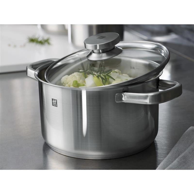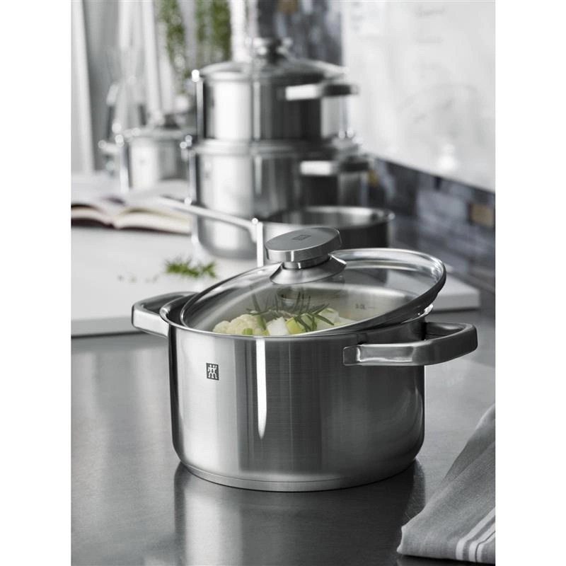Solidne i trwałe naczynia kuchenne to podstawa wyposażenia każdej kuchni. Niesłabnącym powodzeniem cieszą się od lat garnki kuchenne niemieckiej firmy Zwilling. Wysokiej jakości stal nierdzewna 18/10 i klasyczne wzornictwo powoduje, że garnki te zaspokoją nawet najbardziej wymagających użytkowników. Unikalna metoda utwardzania stali FRIODUR zapewnia wyjątkową trwałość i odporność na korozję. Powierzchnia garnka jest całkowicie odporna na zarysowania i uszkodzenia mechaniczne. Wielowarstwowe dno, wzmacniane technologią SIGMABOND® Boden gwarantuje równomierny rozkład ciepła. Szefom kuchni, którzy cenią sobie unikalne wzornictwo i wysoką jakość polecamy garnki linii Zwilling Joy. Można ich używać na wszystkich źródłach ciepła, również na kuchenkach indukcyjnych. Dno garnka Zwilling Joy ma wielowarstwową strukturę, co zapewnia równomierne rozłożenie ciepła w naczyniu. Garnki stalowe łatwo jest utrzymać w czystości. Bez problemu doczyścimy nawet mocno przypalone miejsca, nie uszkadzając struktury naczynia. Garnki Zwilling Joy można również czyścić w zmywarce. Wyprofilowane brzegi naczynia ułatwiają wylewanie płynów, a dopasowana szklana pokrywka dokładnie do nich przylega. Garnki Zwilling Joy możemy stosować także w piekarniku, dzięki uchwytom wykonanym ze stali.