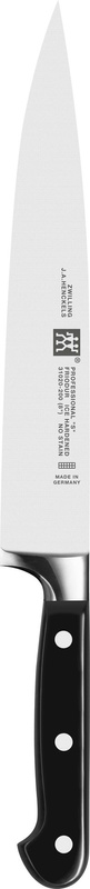 W każdej funkcjonalnej kuchni niezbędnym wyposażeniem są ostre i niezawodne noże kuchenne. Tę funkcję z powodzeniem spełnią wysokiej jakości akcesoria niemieckiej firmy Zwilling. Noże Zwilling od lat zaspokajają wymagania zarówno doświadczonych szefów kuchni, jak i kameralnych, domowych mistrzów kulinarnych. Elegancki design oraz wyjątkowa solidność noży Zwilling gwarantują zadowolenie klientów na całym świecie. Produkty linii Zwilling Professional S to wytrzymałe noże o klasycznym wyglądzie. Są one wytwarzane przy zastosowaniu nowoczesnej technologii SIGMAFORGE®, która zapewnia trwałość produktu. Do produkcji użyto specjalnej, wytrzymałej stali Cronidur 30. Każdy egzemplarz jest doskonale wyważony, co zapewnia komfort użytkowania. RĘKOJEŚĆ NOŻA PROFESSIONAL "S" łączenie rękojeści i ostrza idealnie gładkie, bez zgrubień wypolerowana rączka w kolorze czarnym odporny na uszkodzenia mechaniczne twardy, gładki materiał ABS 3 nity, zapobiegające rozdzieleniu rączki od ostrza OSTRZE NOŻA PROFESSIONAL "S" ostrzone przy pomocy technologii laserowej wytworzone z wysokowęglowej stali FRIDOUR ostre na całej długości, od nasady aż po czubek noża gwarancja nierdzewności WYMIARY Nóż do wędlin Widelec do mięsa