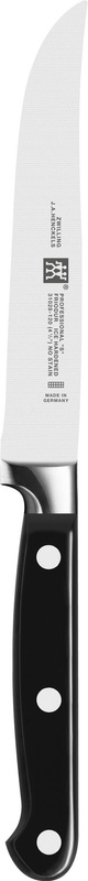 W każdej funkcjonalnej kuchni niezbędnym wyposażeniem są ostre i niezawodne noże kuchenne. Tę funkcję z powodzeniem spełnią wysokiej jakości akcesoria niemieckiej firmy Zwilling. Noże Zwilling od lat zaspokajają wymagania zarówno doświadczonych szefów kuchni, jak i kameralnych, domowych mistrzów kulinarnych. Elegancki design oraz wyjątkowa solidność noży Zwilling gwarantują zadowolenie klientów na całym świecie. Produkty linii Zwilling Professional S to wytrzymałe noże o klasycznym wyglądzie. Są one wytwarzane przy zastosowaniu nowoczesnej technologii SIGMAFORGE®, która zapewnia trwałość produktu. Do produkcji użyto specjalnej, wytrzymałej stali Cronidur 30. Każdy egzemplarz jest doskonale wyważony, co zapewnia komfort użytkowania. Wysokiej klasy czteroczęściowy zestaw noży do steków od firmy Zwilling to idealna propozycja dla tych, którzy nie wyobrażają sobie swojego stołu bez dań z mięsa. Kłopotliwe do tej pory oddzielanie tłuszczu czy ścięgien nigdy nie było tak proste. Nieoceniona pomoc dla profesjonalistów, ale też i ambitnych amatorów. Wszystkie noże charakteryzują się prostym, ale jednocześnie stylowym designem. Ostrza koloru srebra i czarny uchwyty tworzą idealną wizualnie kompozycję. Co więcej, rączki noży charakteryzują się uniwersalnym kształtem, dzięki czemu bez problemu wpasują się w każdą dłoń. Każdy nóż mierzy 25 cm, co zapewnia swobodną pracę w kuchni. Specjalna stal zapewnia wysoką trwałość i wytrzymałość. Mimo to jednak, ostrze pozostało elastyczne, dzięki czemu wygodnie operuje się nim w kuchni. Olśnij swoich gości przygotowanym przez siebie pysznym stekiem. Dana mięsne, które do tej pory mogły przerażać perspektywą ciężkiej pracy, będą samą przyjemnością. Z nożami do steków firmy Zwilling żaden kawał mięsa nie będzie Ci straszny. RĘKOJEŚĆ NOŻA PROFESSIONAL "S" łączenie rękojeści i ostrza idealnie gładkie, bez zgrubień wypolerowana rączka w kolorze czarnym odporny na uszkodzenia mechaniczne twardy, gładki materiał ABS 3 nity, zapobiegające rozdzieleniu rączki od ostrza OSTRZE NOŻA PROFESSIONAL "S" ostrzone przy pomocy technologii laserowej wytworzone z wysokowęglowej stali FRIDOUR ostre na całej długości, od nasady aż po czubek noża gwarancja nierdzewności WYMIARY