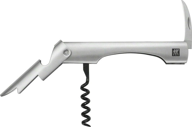 Elegancki, wygodny korkociąg z satynowanej stali. Ma ostrze do rozrywania folii oraz element do zaczepienia o rant butelki, co ułatwia otwieranie przy użyciu dźwigni. Wzmocniona, hartowana sprężyna. Znakomity na prezent – zestaw zawiera również eleganckie pudełko o wymiarach 150 x 80 x 27 mm.