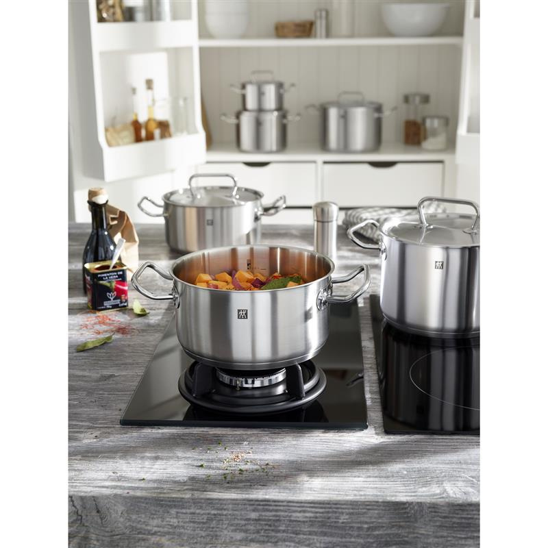 Garnek niski ZWILLING TWIN® Classic z idealnie dopasowaną pokrywką doskonale nadaje się do pieczenia, smażenia oraz duszenia. Świetnie sprawdzi się zarówno w przypadku dużej porcji mięsa jak i pysznego gulaszu. Bez najmniejszego problemu ugotuje wszystkie warzywa. Ten stalowy garnek, wywodzący się z serii TWIN® Classic od firmy Zwilling jest więc prawdziwym wielozadaniowcem niezbędnym w każdej kuchni. Garnki TWIN® Classic zrobiono z wysokiej jakości stali nierdzewnej, dzięki czemu łatwe w utrzymaniu czystości, odporne na zadrapania, higieniczne i nie wpływają na smak gotowanych w nich potraw. Posiadają wielowarstwowe dno, którego środek wykonano z czystego aluminium, pozwalającego na równomierny przepływ ciepła. Na serię składa się wiele różnorodnych garnków oraz patelni, co pozwoli Państwu łatwo skompletować nowy, dostosowany do osobistych potrzeb zestaw. Garnek niski z pokrywką Zwilling® nadaje się do każdego rodzaju kuchenki, włączając w to płyty indukcyjne, a po użyciu bez obaw może być myty w zmywarce. Jego ergonomiczne uchwyty wykonane są z wyjątkowej stali nierdzewnej, która podczas gotowania pozostaje przyjemnie chłodna. W tym praktycznym, wielofunkcyjnym garnku bez najmniejszego wysiłku wyczarują Państwo przepyszne dania mięsne czy rybne oraz wyborne potrawy wegetariańskie takie, jak Ratatouille składający się z najróżniejszych warzyw.