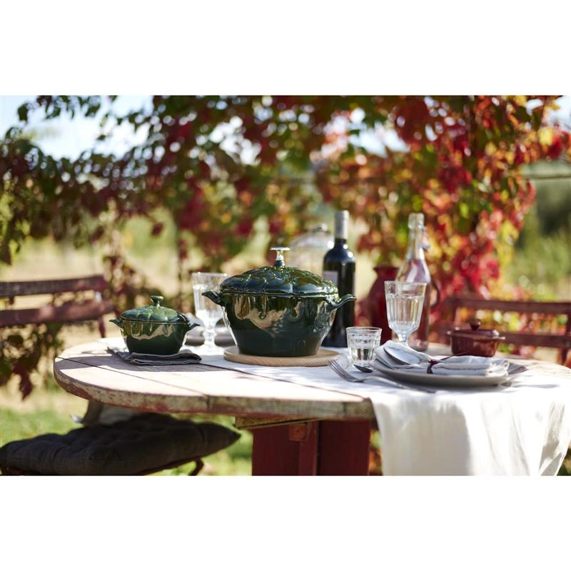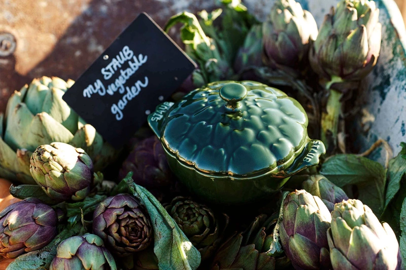 W żeliwnym naczyniu z serii warzyw ogrodowych STAUB przygotują Państwo wyborne dania, które dzięki doskonałym właściwościom produktu zachowają szczególny smak i aromat. To prawdziwe dzieło sztuki w formie bazyliowo-zielonego karczocha, przykuwa uwagę oryginalnym designem, doskonale prezentując się na każdym stole.