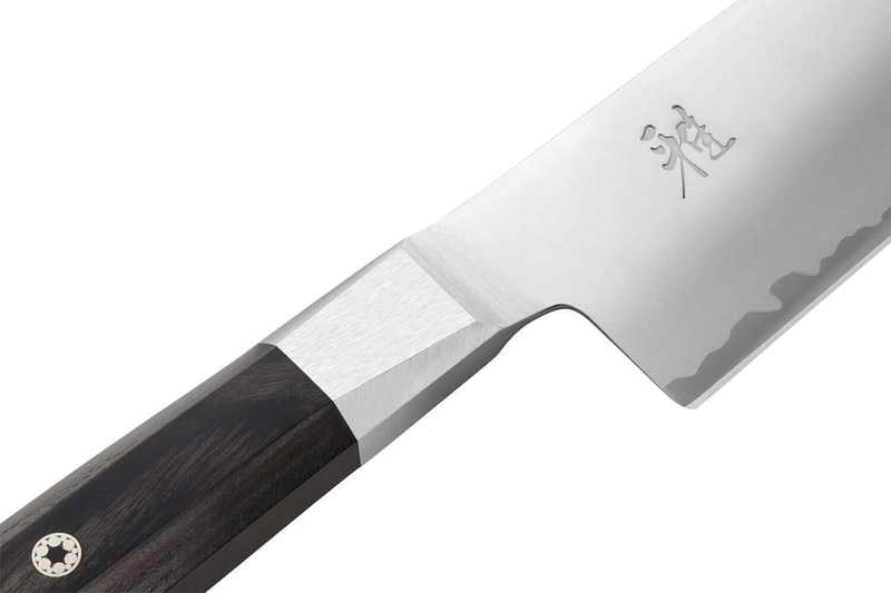 Jednak japońskie noże to nie tylko ostrze, ale również szczególne uchwyty. Linia MIYABI 4000FC prezentuje się bardzo elegancko dzięki impregnowanym rączkom z drewna Pakka, zdobionym mozaikowym logo. Doskonale leżą one w dłoni dzięki ośmiokątnemu kształtowi, co zapewnia pozbawioną wysiłku, bezpieczną pracę.