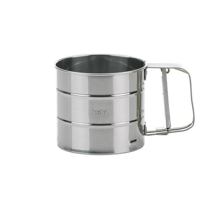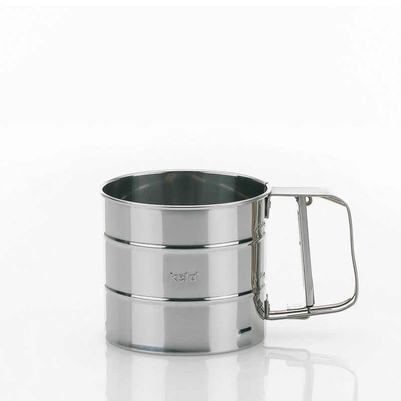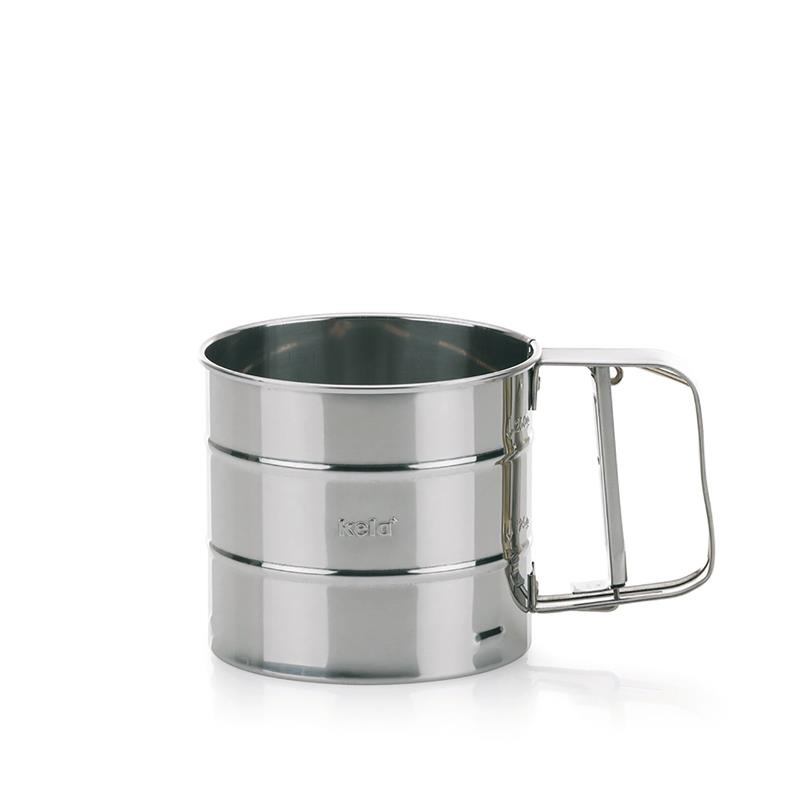 Kela - Przesiewak do mąki 10cm stalowy Frieda Kubek z sitkiem do przesiewania mąki, cukru etc., marki Kela. Kubek wykonany w całości ze stali nierdzewnej.