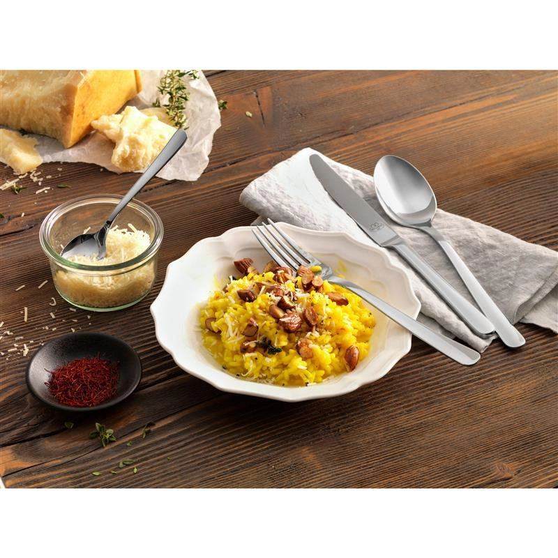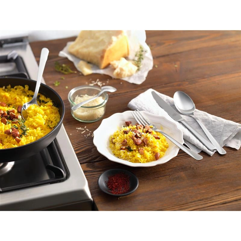 Nowoczesne, matowe wykończenie oraz zaokrąglony kształt nadają zestawowi klasy i elegancji, czyniąc go dodatkowo idealnym elementem dekoracyjnym każdego stołu – bez względu na charakter spotkania. Z tym niepowtarzalnym zestawem sztućców Ballarini Julietta nawet najprostsze dania nabiorą szyku i blasku.