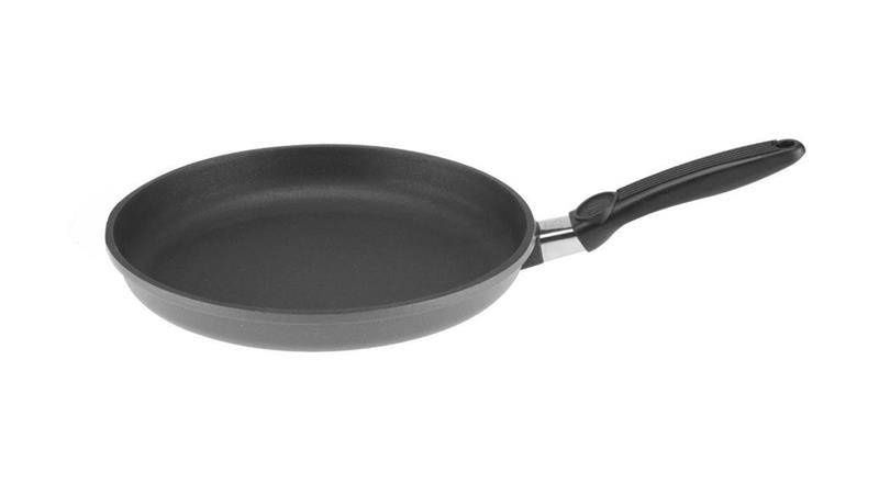 Patelnie niemieckiej firmy SKK to najwższa jakość wśród naczyń z powłokami nieprzywierlnymi. Solidny, wytrzymały, gruby aluminiowy odlew jest wielowarstwowo pokryty tytanem oraz najwyższej jakości powłoką nieprzywieralną Titan Durit Resist.