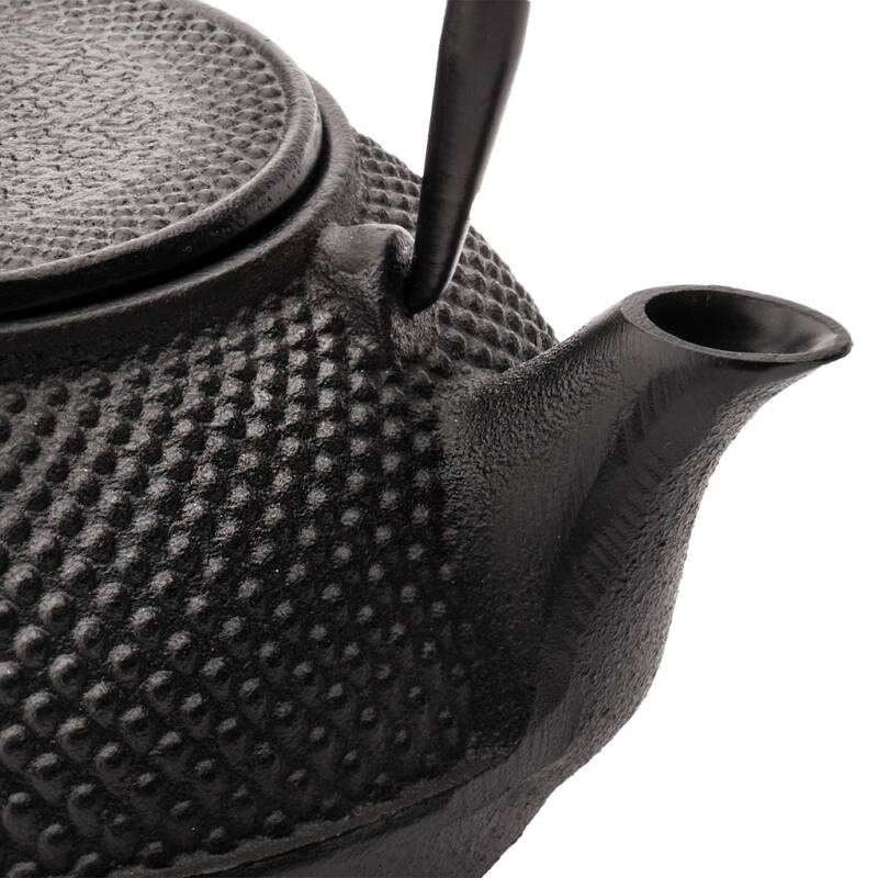 Żeliwny dzbanek od wewnątrz pokryty emalią ma wygodny uchwyt ułatwiający nalewanie. Herbata parzona w tego rodzaju naczyniach na długo pozostaje gorąca. Do dzbanka dołączony jest filtr do parzenia mieszanek liściastych. Poj.: 0,8L - 4 filiżanki herbaty. Myć ręcznie, a po umyciu należy dokładnie osuszyć, by nie rdzewiał. Do dzbanka można dokupić żeliwny podgrzewacz na tealighty, żeliwną podstawkę lub czarki do picia, pochodzące z tej samej kolekcji.
