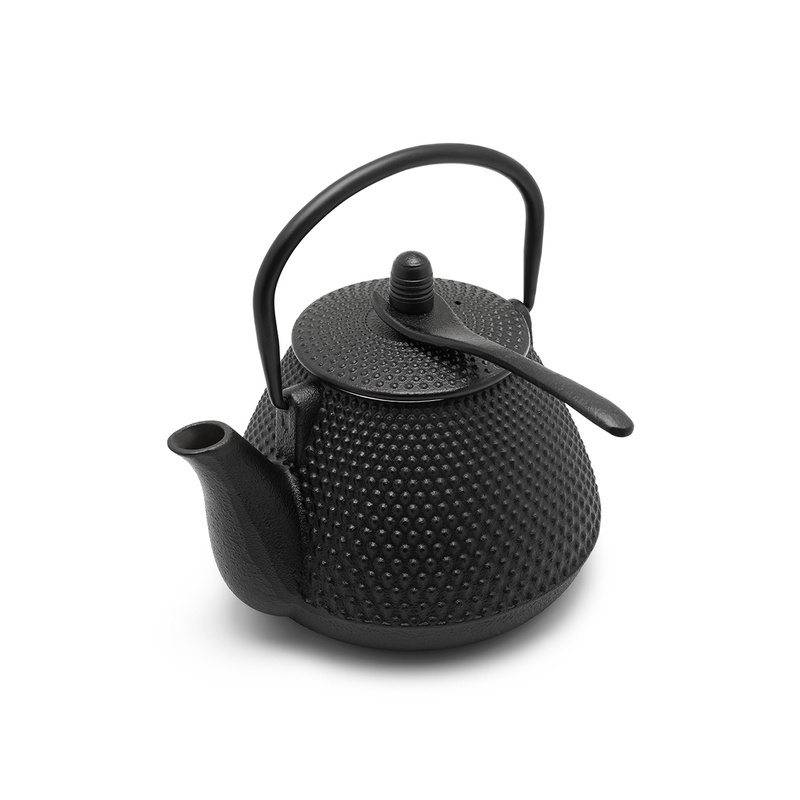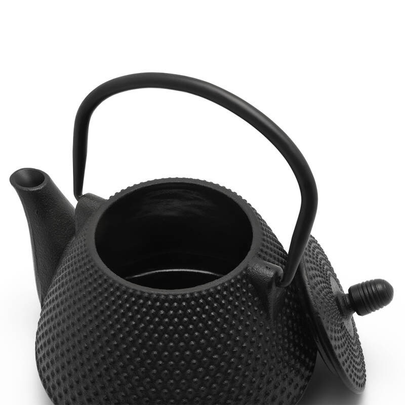 Żeliwny dzbanek od wewnątrz pokryty emalią ma wygodny uchwyt ułatwiający nalewanie. Herbata parzona w tego rodzaju naczyniach na długo pozostaje gorąca. Do dzbanka dołączony jest filtr do parzenia mieszanek liściastych. Poj.: 1L - 4 filiżanki herbaty. Myć ręcznie, a po umyciu należy dokładnie osuszyć, by nie rdzewiał. Do dzbanka można dokupić żeliwny podgrzewacz na tealighty, żeliwną podstawkę lub czarki do picia.