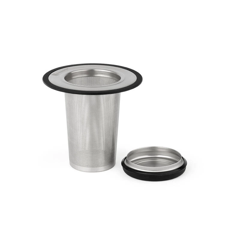 Uniwersalny zaparzacz ze stali nierdzewnej z czarnymi, silikonowymi elementami. Idealny do parzenia herbaty liściastej i ziołowych naparów w dzbankach o pojemności powyżej 1 litra. Malutkie otwory w sitku zatrzymują nawet najmniejsze cząstki mieszanki do zaparzania. Pokrywka, która znajduje się w zestawie, nie tylko zatrzymuje ciepło, przez co ułatwia proces parzenia, ale pełni także funkcję talerzyka, na który można wyjąć koszyczek po zaparzeniu herbaty. Zaparzacz sprawdzi się również podczas parzenia herbaty bezpośrednio w kubku (max średnica kubka 9 cm). Można myć w zmywarce.