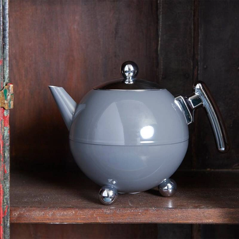 Dzbanek termiczny w kształcie kuli trzymający temperaturę herbaty wykonany jest z nierdzewnej stali z szarym wykończeniem. Izolacja termiczna utrzymuje temperaturę napoju przez co najmniej godzinę. Przeznaczony dla 4-5 osób. Wykonanie dzbanka o takiej jakości wymaga ponad 100 różnych etapów procesu wytwórczego i wyjątkowego kunsztu rzemieślniczego. Uchwyt się nie nagrzewa, dzięki czemu używanie dzbanka jest bardzo bezpieczne. Zapakowany w prezentowe pudełko. Można myć w zmywarce. Do dzbanka można dokupić odpowiedni filtr/zaparzacz do parzenia mieszanek liściastych.