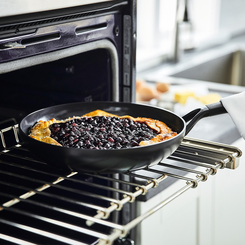 PATELNIA DIAMENTOWA SMART SHAPE 20 CM TO WYGODNE PRZECHOWYWANIE - PATELNIA WCHODZI JEDNA W DRUGĄ. Seria Smart Shape to rączka o unikalnej konstrukcji v-shape niepołączona nitami z powierzchnią patelni, dłużej pozostaje chłodna i ułatwia czyszczenie patelni, to także specjalnie wyprofilowane rączki umożliwiające przechowywanie patelni jedna w drugiej oszczędzając do 30% więcej miejsca w szafkach kuchennych. Zastosowano najnowszą odmianę powłoki Thermolon™ Minerals Pro, która zawiera w swym składzie diamenty dobrze rozprowadzające i utrzymujące ciepło. Dzięki tej powłoce naczyń można - i należy - używać na małym i średnim ogniu. Do przygotowania dań wystarczy niewiele tłuszczu. Patelnię wykonano w technologii Magneto™, oznacza to, że dno naczyń zbudowano z aluminium nasyconego cząsteczkami ferromagnetycznymi, dzięki którym zjawisko indukcji jest możliwe i naczynie nagrzewa się mimo nieobecności stali. Aluminium użyte do produkcji patelni jest podwójnie anodowane, co sprawia, że materiał jest twardszy niż stal. Dodatkowo dno patelni jest uszlachetnione rozproszonymi cząsteczkami miedzi. Patelni można używać na wszystkich kuchenkach, w tym także w piekarniku (do +160°C). Wyprodukowano bez PFOA, nie zawiera ołowiu ani kadmu. Produkt można myć w zmywarce. Natomiast w celu zachowania nieskazitelnego wyglądu oraz właściwości nieprzywierających na dłużej zaleca się mycie ręczne. Przed umyciem patelnię należy wystudzić.