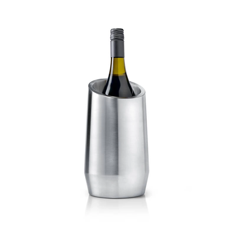 Cooler na butelkę wina wykonany jest ze szczotkowanej stali nierdzewnej, posiada izolację termiczną. Konstrukcja zapobiega skraplaniu się wody na zewnętrz. Producent zaleca mycie ręczne.