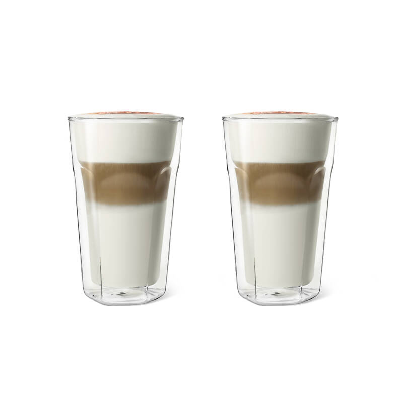 Szklanki z podwójną ścianką do latte lub herbaty. Izolacja termiczna sprawia, że szklanka na zewnątrz pozostaje chłodna, można ją bezpiecznie trzymać w dłoni. Szklanki wykonane ze szkła borokrzemowego, które ma dłuższą żywotność niż większość rodzajów szkła. Szklanki mają pojemność 280 ml i można ich używać w kuchence mikrofalowej oraz myć zmywarce.