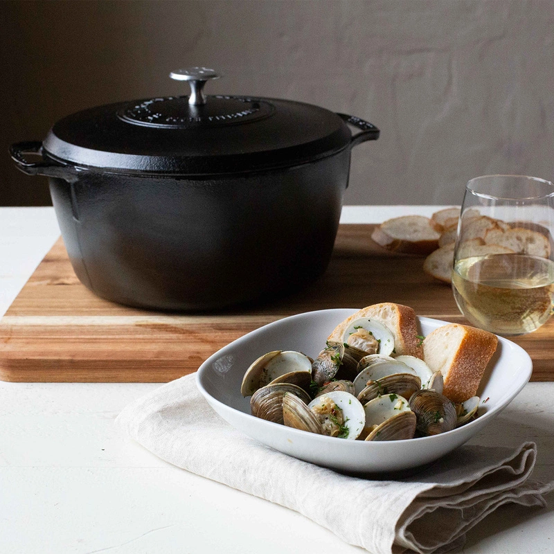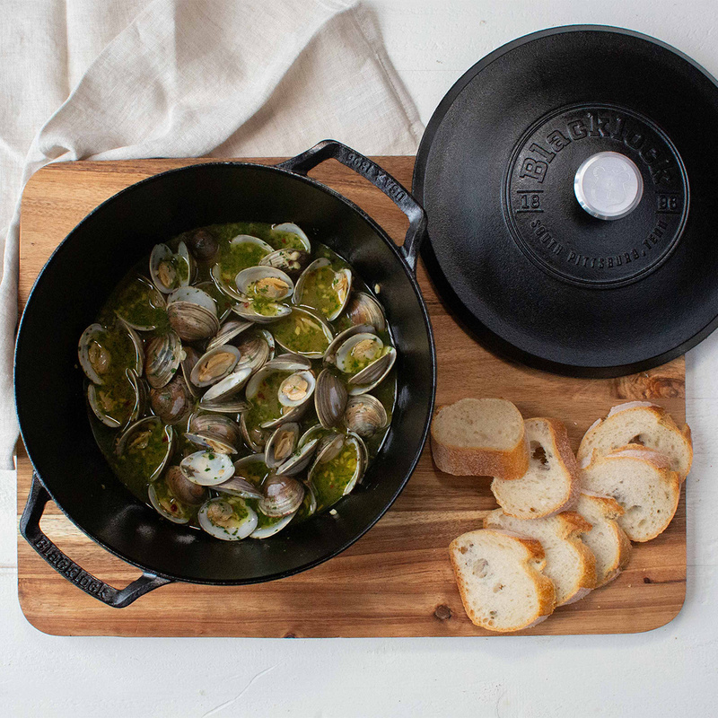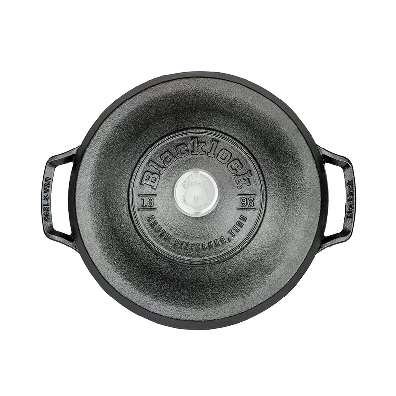 Lżejszy niż inne żeliwa potrójnie sezonowany, sygnowany rokiem 2002. Kolekcja Blacklock, podobnie jak wszystkie żeliwa marki Lodge, są impregnowane naturalnym olejem kuchennym wypalanym na ich powierzchni. Tworzy to warstwę ochronną zapewniającą łatwość czyszczenia. Produkty z serii Blacklock są wykonane nowoczesną, innowacyjną metodą produkcji, dzięki której odlew jest bardzo cienki, a naczynia są lekkie, przy utrzymaniu właściwości 100% żeliwa. Kociołek posiada: - Wygodne, boczne uchwyty - Pochylone ściany boczne, które ułatwiają mieszanie potraw - Albuminowy uchwyt przy pokrywce - Specjalne tłoczone pierścienie na spodniej części pokrywki, umożliwiające lepszą cyrkulację podczas gotowania Przeznaczony do użytku na dowolnym źródle ciepła lub powierzchni do gotowania, może być używany zarówno w kuchni, jak i na zewnątrz, np. na ognisku, na grillu. Pamiętaj, aby dbać o żeliwo, a będzie ono służyć przez pokolenia. Po prostu umyj, wytrzyj do sucha i przetrzyj ręcznikiem papierowym nasączonym olejem.