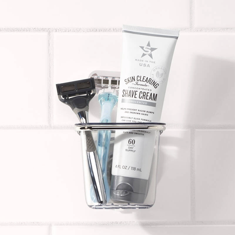 Pojemnik łazienkowy z dużą i mocną przyssawką - bez konieczności wbijania kołków i robienia dziur w płytkach. W pojemniku można łatwo i bezpiecznie przechować niewielkie akcesoria tj. szczoteczki do czyszczenia twarzy, maszynki do golenia, grzebienie i inne niewielkie przybory toaletowe lub próbki kosmetyków. System mocowania uchwytu do pojemnika oparty jest na mocnej przyssawce do umieszczenia na gładkich i odtłuszczonych powierzchniach takich, jak: szkliwione płytki, metal, szkło. Montaż uchwytu jest bardzo łatwy, wystarczy zamocować przyssawkę na wybranej powierzchni, a następnie założyć na nią pojemnik. Pojemnik posiada otwory, które ułatwiają suszenie. BPA free, nie zawiera fTalanów.