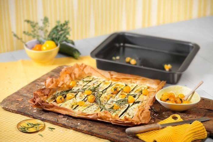 - szerszy brzeg - łatwe przenoszenie i wyjmowanie z piekarnika,