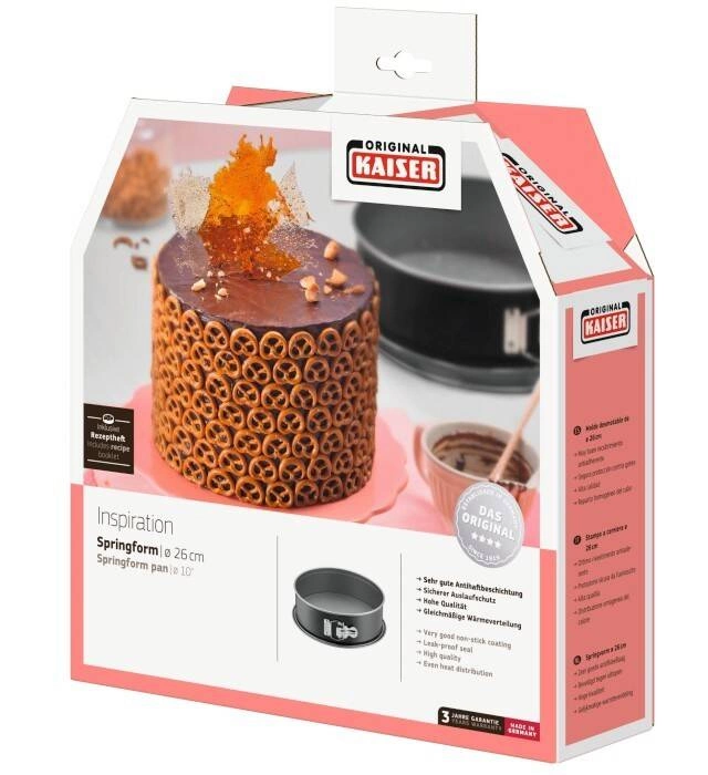 - wyjmowane dno i rozpinana obręcz – łatwe wyjmowanie i podawanie ciasta,