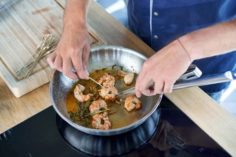 Powłoka patelni składa się z trzech warstw i jest szczególnie wytrzymała i trwała. Dzięki mocnemu aluminiowemu rdzeniu dna pokrytego powłoką SIGMA, patelnia ze stali nierdzewnej szybko się nagrzewa. Ciepło jest rozprowadzane bardzo równomiernie na krawędzi. Wolisz kuchenkę indukcyjną podczas gotowania? Nie ma problemu. Patelnię można używać na każdym rodzaju kuchenki i można ją myć w zmywarce. Dzięki temu masz mniej pracy i możesz w pełni skoncentrować się na swoich gościach.