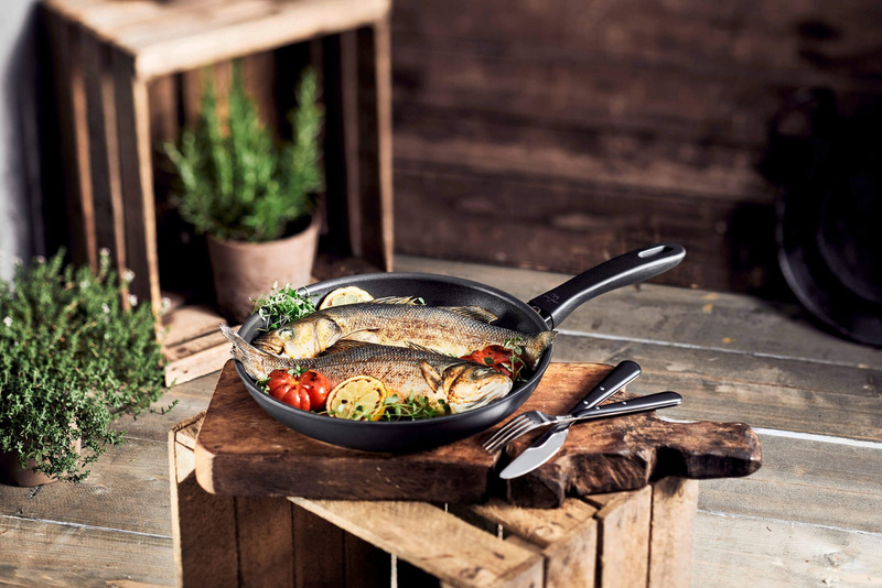 Nie tylko jej perfekcyjny wygląd, ale przede wszystkim właściwości czynią ją świetnym partnerem na każdej kuchence – również indukcyjnej. Wykuta z masywnego aluminium szybko i równomiernie rozprowadza ciepło na całej powierzchni, a praktyczne dodatki takie jak Thermopoint umiejscowiony na wygodnym uchwycie z tworzywa sztucznego sprawiają, że korzystanie z niej jest dziecinnie proste. Wykorzystanie specjalnej technologii Radiant Induction nie tylko umożliwia korzystanie na płytach indukcyjnych, ale pozytywnie wpływa na redukcję zużycia energii. Ponadto naczynie bez obaw czyścić można w zmywarce. Aby jeszcze bardziej uprzyjemnić gotowanie, patelnia pokryta została trwałą, 4-warstwową powłoką nieprzywierającą KERAVIS Extreme o grubości 4.5 mm odporną na pęknięcia i zarysowania. Po co więc tracić czas na długie nagrzewanie czy szorowanie zabrudzeń, skoro można go poświęcić na wymyślanie autorskich, aromatycznych dań? Patelnia Ballarini Avola sprosta zarówno idealnie podsmażonym owocom morza, ale i doskonałym makaronom.