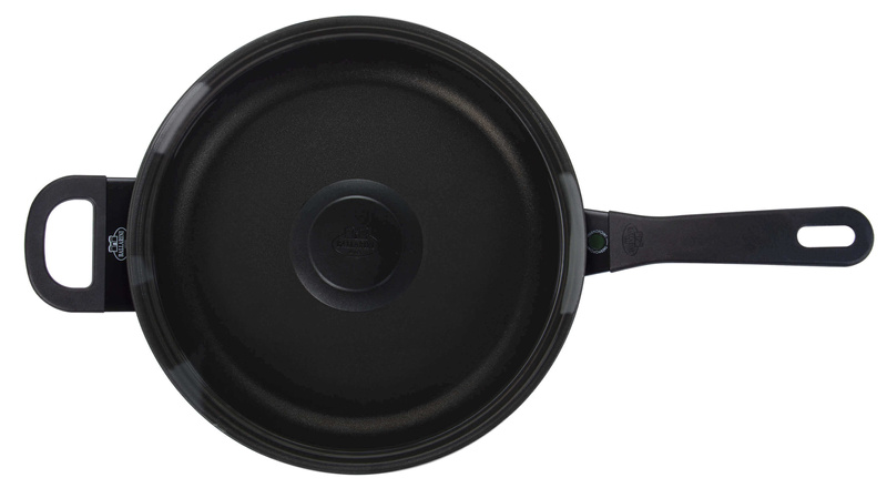 Dzięki solidnemu, kutemu aluminium, z którego naczynie zostało wykonane, ciepło rozprowadza się szybko i równomiernie na całej powierzchni, co jest szczególnie przydatne w wymagającym czasu procesie duszenia. Bimetalowe dno łączące aluminium i stal pozwalają natomiast na korzystanie na wszystkich rodzajach kuchenek, w tym indukcyjnych.