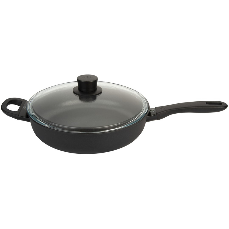 Wysoki rant patelni pozwala na wstępne obsmażenie składników, by następnie poddusić je zachowując cały aromat. Umożliwia to również idealnie dopasowana, szklana pokrywa o tej samej średnicy. Specjalna, czterowarstwowa powłoka KERAVIS Extreme o grubości 4.5 mm, wzbogacona cząsteczkami ceramicznymi zapobiega przywieraniu i przypaleniu, jednocześnie chroniąc przed niechcianymi rysami i umożliwiając czyszczenie w zmywarce. Wykuta z masywnego aluminium szybko i równomiernie rozprowadza ciepło, co pozwala na zaoszczędzenie cennego czasu. Patelnia do duszenia zwana również patelnią sauté nadaje się do wszystkich rodzajów kuchenek, również indukcyjnych dzięki bimetalowemu spodowi z aluminium i stali.