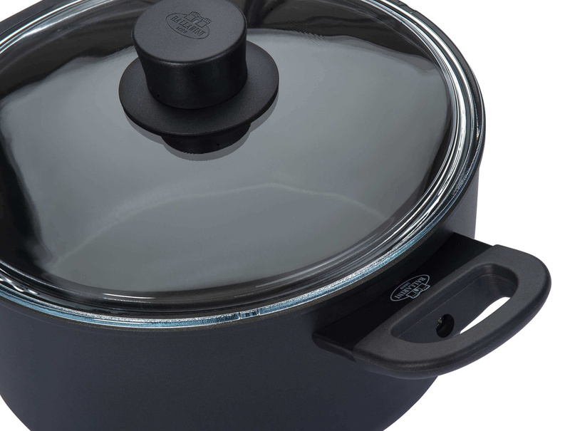 Nie trzeba być koneserem włoskiego designu, aby zauważyć piękno odlewu pokrytego proszkową powłoką w głębokiej czerni. Projekt mediolańskiego duetu Matteo Thun & Antonio Rodriguez cieszy oko każdego. Do tego wszystkiego optymalny rozmiar naczynia umożliwia przygotowanie szerokiego menu, które sprawi, że Twoi goście zaniemówią.