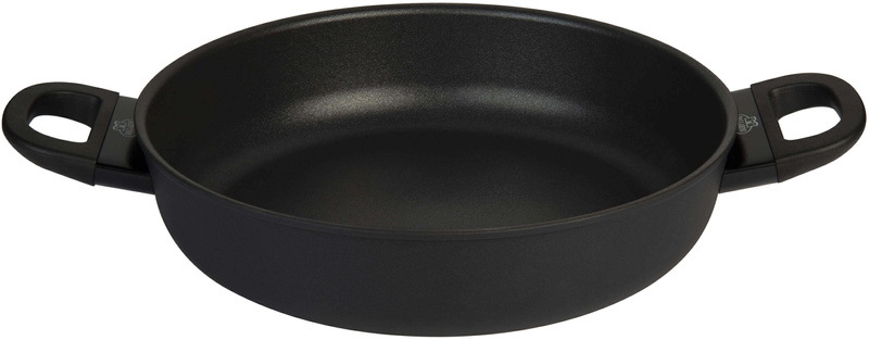 Solidne, kute aluminium zapewnia szybkie i równomierne nagrzewanie, a w połączeniu ze specjalną technologią Radiant Induction może być używane na wszystkich rodzajach kuchenek, w tym indukcyjnych, które dodatkowo umożliwiają gotowanie energooszczędne. Co ponadto? Uniwersalność: patelnia może być używana również jako naczynie do duszenia. Wystarczy obsmażyć niezbędne składniki, dodać wody lub bulionu i zamknąć szczelną, idealnie dopasowaną pokrywę. Masz ochotę na nieco włoskiego klimatu? Aromatyczny gulasz ossobuco wykonasz z łatwością profesjonalisty.
