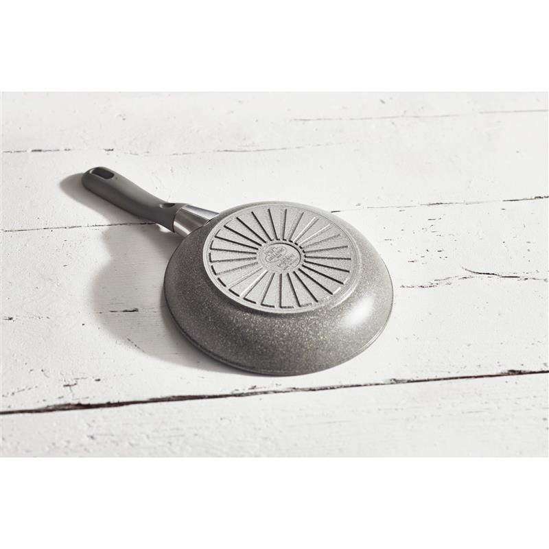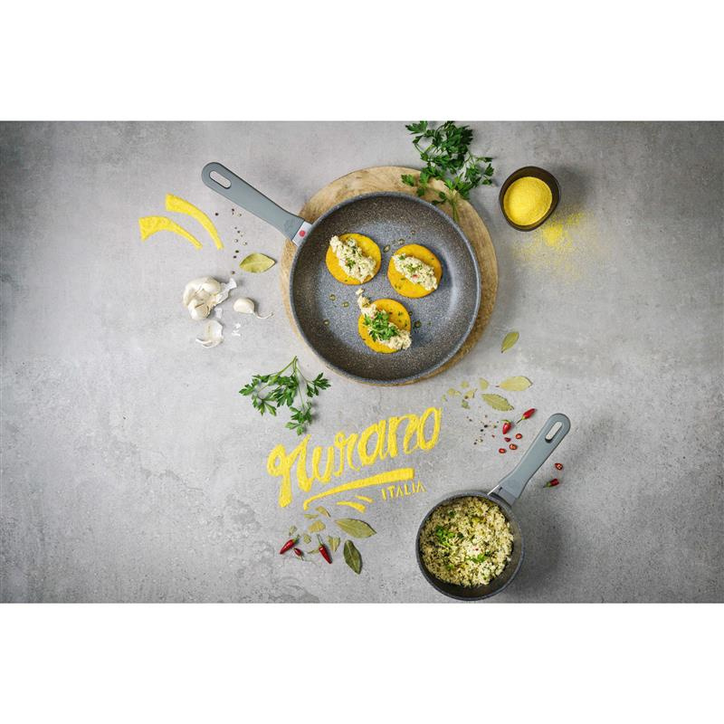 Patelnia z serii Murano marki Ballarini stanie się Twoją najbliższą kuchenną przyjaciółką. Smażenie, duszenie czy gotowanie okaże się codzienną przyjemnością. Jej piękny, granitowy design stworzony został przez wybitny duet projektantów Matteo Thun & Antonio Rodriguez. Patelnia jest odporna na zarysowania i łatwa w pielęgnacji dzięki specjalnej 5-warstwowej powłoce nieprzywierającej GRANITUM Extreme o grubości 4.5 mm. Bez obaw można ją czyścić w zmywarce, jednak dla zagwarantowania wyjątkowej trwałości zalecane jest mycie ręczne. Wysokiej jakości materiał wykonany z litego, kutego aluminium oszczędza cenny czas podczas nagrzewania.