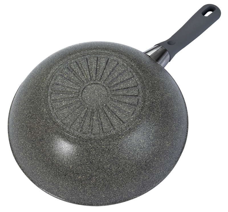Intensywne mieszanie nie ma jednak żadnego wpływu na specjalną, 5-warstwową powłokę nieprzywierającą GRANITUM Extreme o grubości 4.5 mm. Wpływa ona nie tylko na ułatwienie smażenia, ale też sprawia, że patelnia łatwo i bezproblemowo się czyście zarówno w zmywarce, jak i – co zalecane – pod bieżącą wodą. Podczas korzystania z woka niezwykle ważne jest utrzymanie stałej, wysokiej temperatury. Dzięki solidnemu, kutemu aluminium nie ma z tym najmniejszemu problemu, ponieważ doskonale rozprowadza ciepło na całej powierzchni. Bez względu na rodzaj kuchenki wok Ballarini Murano sprawdzi się idealnie - zwłaszcza w przypadku płyt indukcyjnych. Atutem patelni są jednak nie tylko wybitne właściwości oraz praktyczność, ale też świetny, granitowy wygląd zawdzięczany duetowi prosto z Mediolanu: Matteo Thun & Antonio Rodriguez.