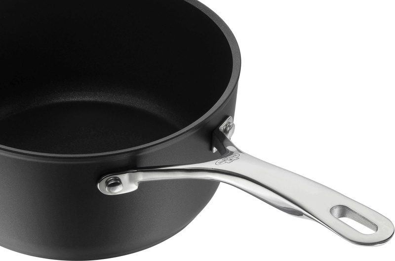 Rondel wykonany z wielowarstwowego, kutego aluminium wysokiej jakości typu food safe. Dno wzmacniane stalą nierdzewną. Powłoka non-stick wzbogacona warstwą tytanową.