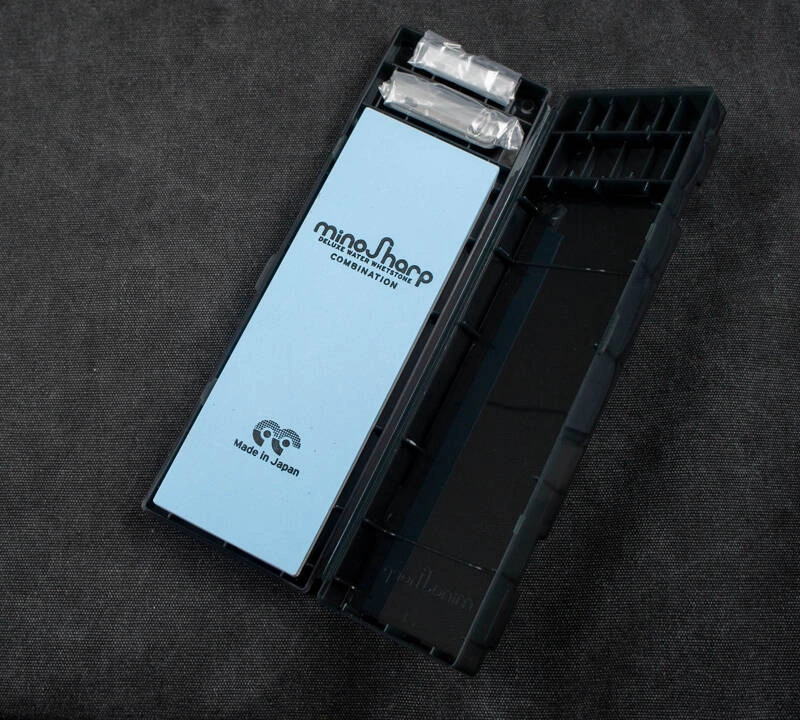 Profesjonalny dwustronny kamień ceramiczny do ostrzenia marki MinoSharp o gradacji 240/1000. W skład zestawu wchodzą również 2 prowadnice pomagające utrzymać stały kąt podczas ostrzenia noży. Pudełko na kamień pełni również funkcję podstawki podczas ostrzenia, zapewniając bardzo dobrą stabilizację kamienia. Granulacja 1000 służy do polerowania, dzięki czemu można uzyskać perfekcyjnie gładką i ostrą jak brzytwa powierzchnię tnącą. Natomiast granulacja 240 przeznaczona jest do noży bardzo tępych oraz z uszkodzoną krawędzią tnącą.