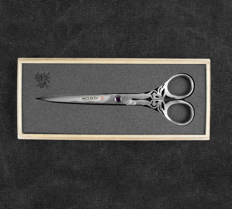 Nożyczki kuchenny wykonane w Japonii w Seki przez firmę Mcusta. Do produkcji zastosowano stal VG10. Każdy egzemplarz jest ręcznie składany, wykończony, ostrzony i kontrolowany przez rzemieślników z zespołu Mcusta. Na nożyczkach zastosowano wzór motyla.