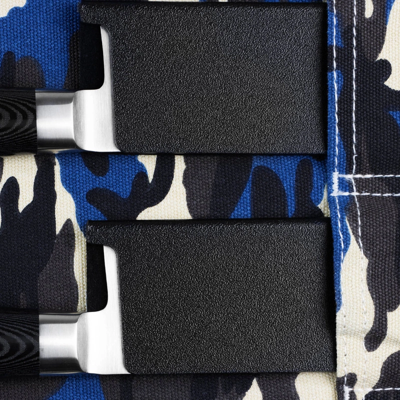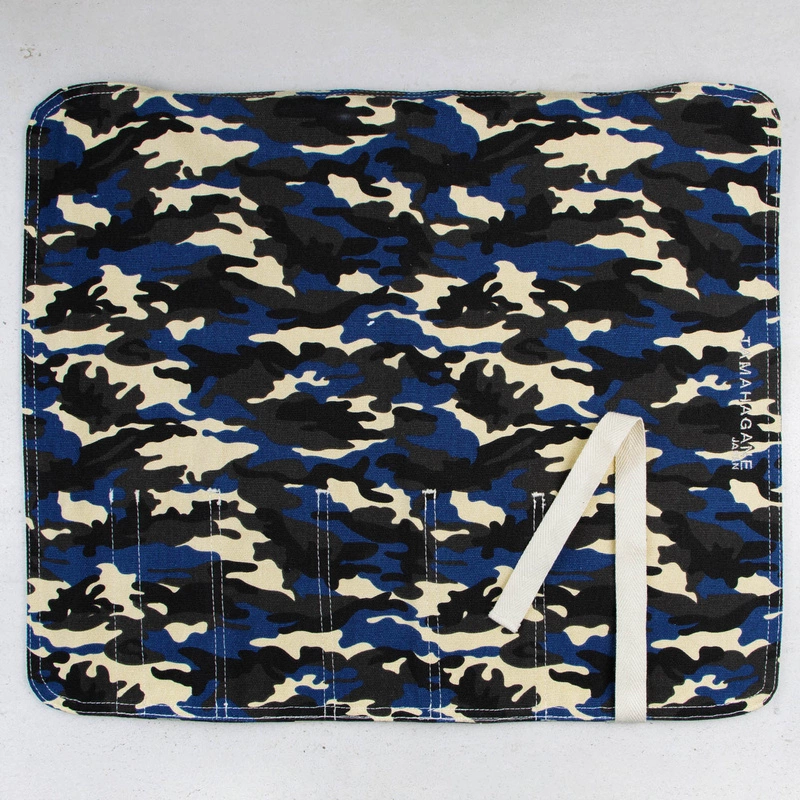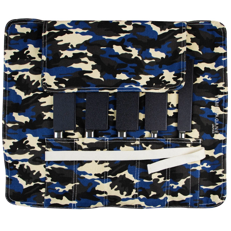Torba na noże firmy Tamahagane, pozwoli bezpiecznie przetransportować 5 noży, ilość w której można zmieścić bardzo wszechstronny zestaw noży kuchennych. W zestawie z torbą są zawarte ochraniacze z tworzywa sztucznego, co chroni zarówno krawędzie tnące przenoszonych noży jak I samą torbę przed uszkodzeniami. Niebagatelny wybór materiału, powoduje że nawet w przypadku w którym w jednym miejscu będzie wielu kucharzy ze swoimi zestawami, ta torba wyróżni się na ich tle. Paradoksalnie, kamuflaż sprawia że jest bardziej widoczna.