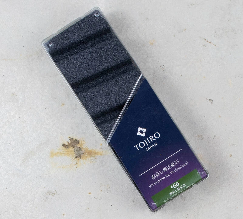 Kamień naprawczy Tojiro, idealnie sprawdza się w usuwaniu nierówności na kamieniu. Przed użyciem należy zmoczyć go w wodzie.