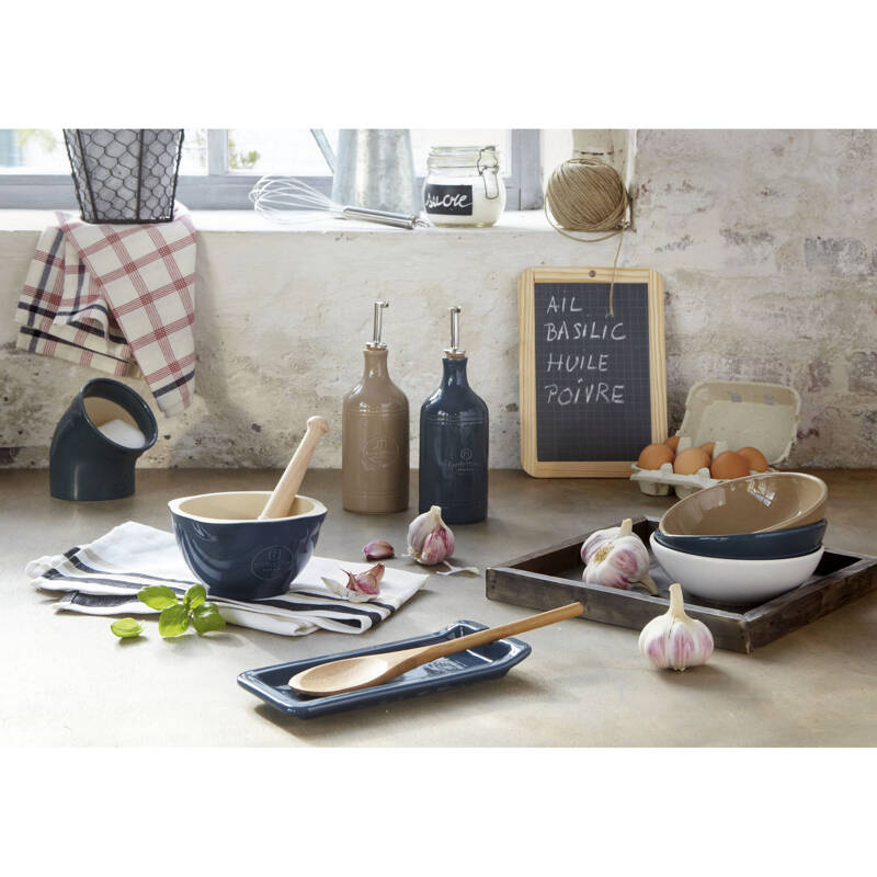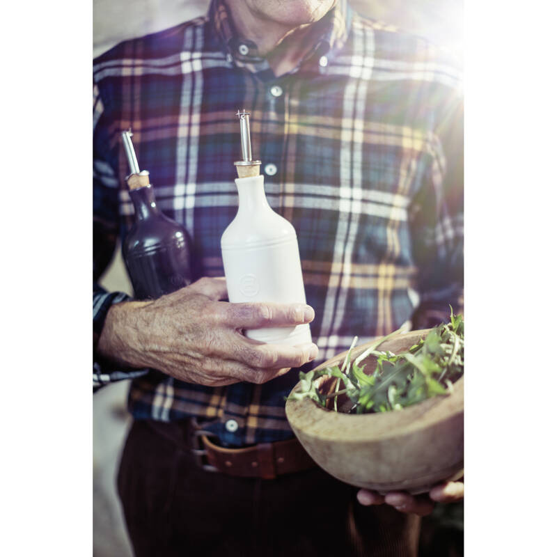 Butelka na oliwę marki Emile Henry to kolejny element kolekcji akcesoriów kuchennych, które nie tylko ożywią Twoją kuchnię, ale przede wszystkim pomogą Ci w codziennym gotowaniu. Butelka została zaprojektowana tak aby dozowanie było precyzyjne, wyjątkowy korek zapobiega nadmiernemu wylewaniu się oliwy, a także zabezpiecza kuchnię przed chlapaniem czy zabrudzeniem samej butelki. Dzięki wykorzystaniu ceramiki nasza butelka zachowuje cały smak najlepszej oliwy z oliwek, chroniąc ją przed światłem.