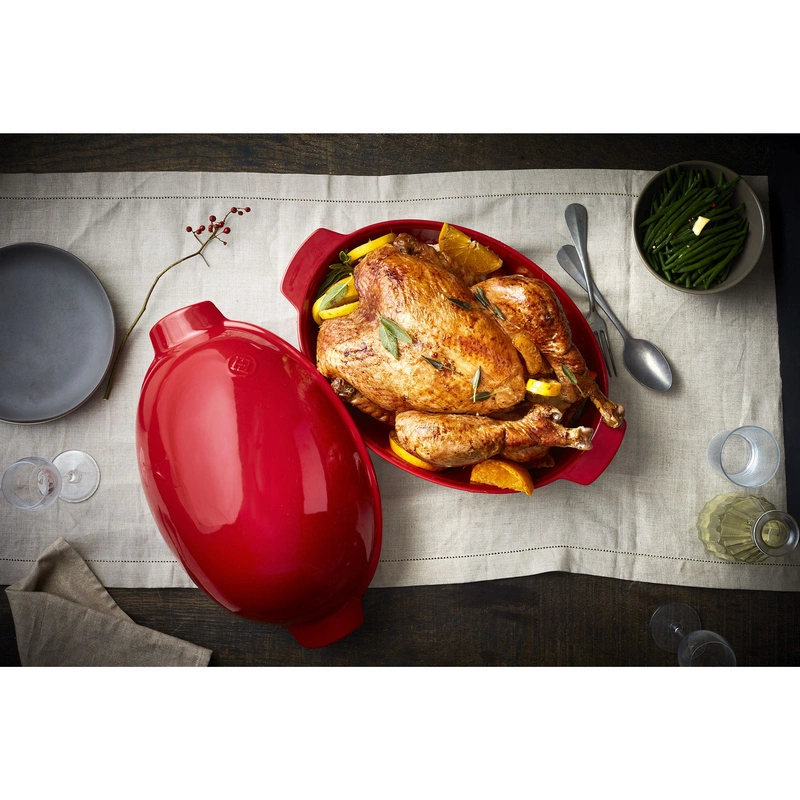 Emile Henry - Duże naczynie do pieczenia drobiu i mięs ceramiczne czerwone