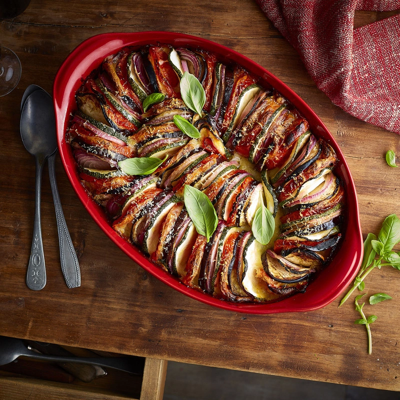 Kształtne linie i uniesione do góry uchwyty sprawiają, że owalne naczynie do zapiekania Emile Henry idealnie nadaje się do eleganckiego serwowania zapiekanek czy pieczonego mięsa… Duża pojemność (3,9l) pozwala przygotować danie nawet dla 10-ciu osób.Duże uchwyty ułatwiają wyjmowanie i przenoszenie z piekarnika bezpośrednio na stół. Ceramika HR® (wysoka odporność) zapewnia równomierne rozprowadzanie ciepła i doskonałą odporność na zmiany temperatury, dzięki czemu potrawa może przejść prosto z zamrażarki do gorącego piekarnika (-20 ° C / + 270 ° C) . Naczynie Oval można również używać w kuchence mikrofalowej, jak i na grillu do 270 ° C. Wysoce odporna glazura chroni przed zarysowaniami i odpryskami oraz przed codziennym czyszczeniem w zmywarce.