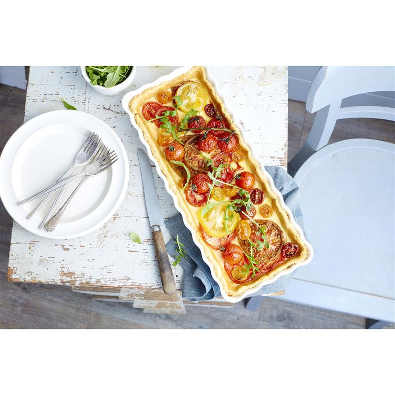 Twoje wypieki można kroić i podawać bezpośrednio z naczynia bez ryzyka zarysowania powierzchni. Prostokątna tarta jest oryginalna, łatwa w podawaniu i praktyczna do zawinięcia na piknik lub jako suchy prowiant na lunch.