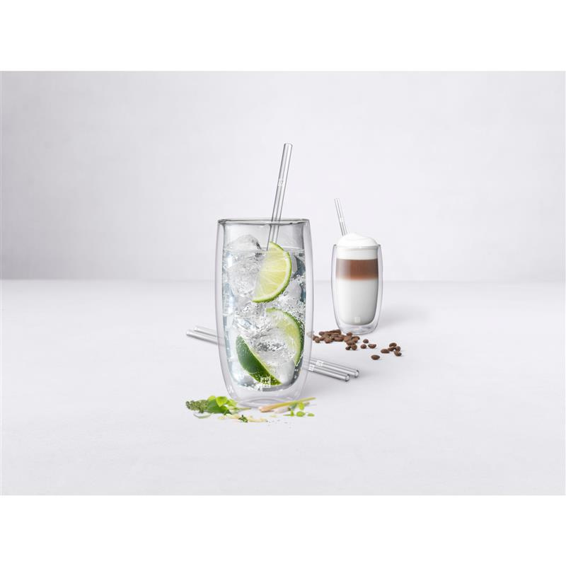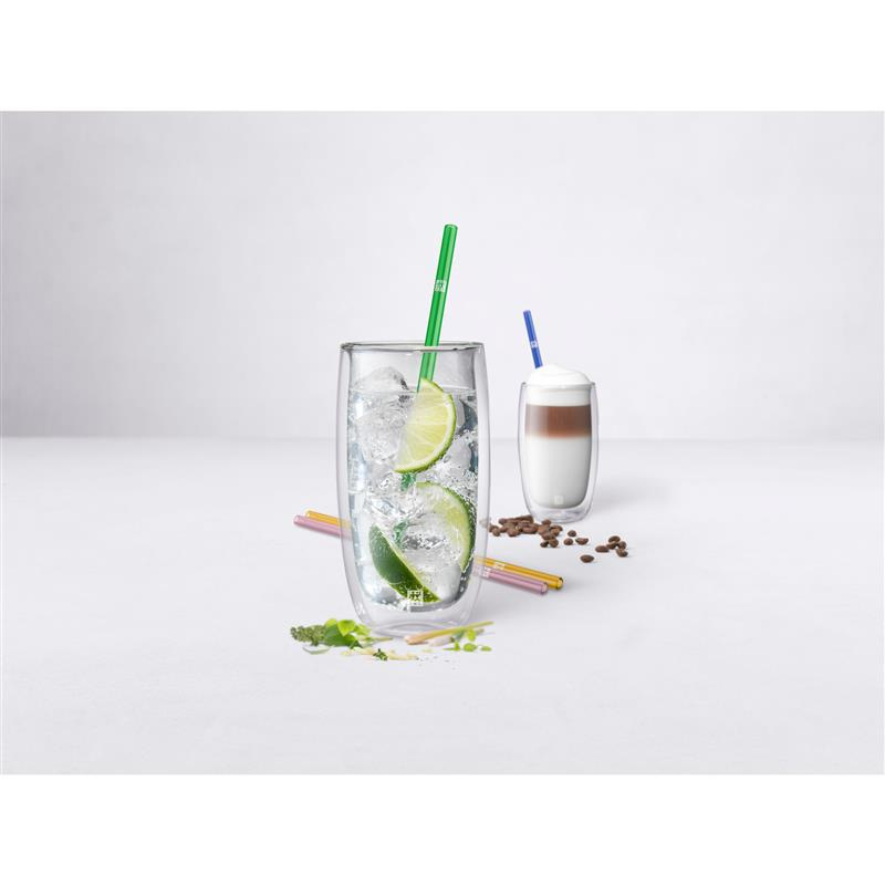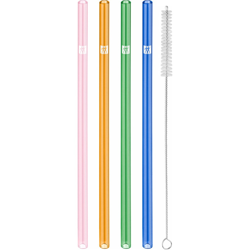 Pożegnaj plastik - szklane słomki ZWILLING Sorrento przyciągają wzrok w napojach i są wielokrotnego użytku. W zestawie ze szczoteczką do czyszczenia znajdują się cztery słomki wykonane ze szkła borokrzemianowego. Słomki do picia są proste i dostępne w 4 kolorach. Materiał jest stabilny, bez smaku i higieniczny, a jednocześnie zapewnia przyjemne uczucie podczas picia. Zrównoważone szklane słomki są wszechstronne, ponieważ można ich używać nie tylko do zimnych napojów, takich jak woda, koktajle czy smoothies, ale także do napojów gorących, takich jak latte macchiato lub chai latte. Czyszczenie słomek jest szczególnie łatwe, ponieważ można je myć w zmywarce. Słomkę można również czyścić za pomocą dołączonej szczoteczki do czyszczenia.