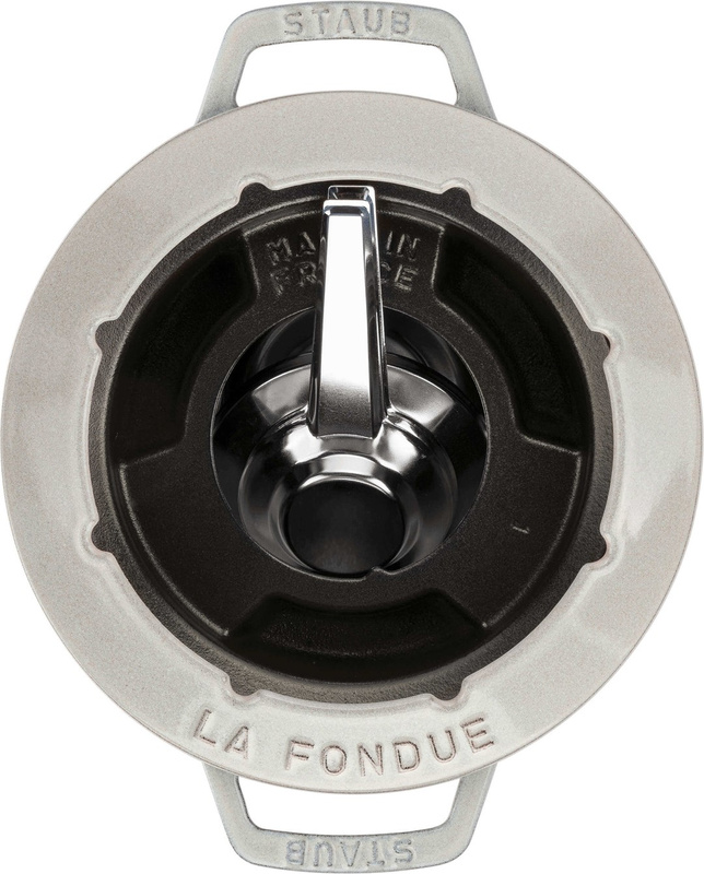 Zestaw do fondue firmy STAUB łączy w sobie klasyczną formę przygotowania z zaletami wytrzymałego żeliwa. Tradycyjne fondue warzywne lub mięsne w oleju lub bulionie, fondue z sera szwajcarskiego z wytrawnym białym winem, fondue deserowe z rozpuszczoną czekoladą czy delikatne fondue rybne - wyobraźnia nie zna granic. Dzięki doskonałemu magazynowaniu ciepła żeliwa naczynie nagrzewa się szybko, równomiernie i pozostaje ciepłe przez długi czas. Jeśli garnek jest podgrzewany na kuchence zamiast nad podgrzewaczem, można go łatwo transportować za pomocą ergonomicznych uchwytów i ustawiać na stole w jadalni. Zdejmowany uchwyt na widelce chroni również przed rozbryzgami oleju na stole lub ubraniu. Dzięki gładkiej, emaliowanej powierzchni wewnętrznej żywność nie przywiera, a wszelkie pozostałości można łatwo usunąć. Wreszcie, podrzewacz można umieścić w naczyniu do góry nogami, a zestaw można schować, aby zaoszczędzić miejsce.