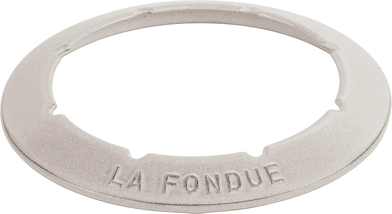 - Zestaw składający się z górnej części do fondue i podgrzewacza wykonanych z żeliwa, palnika, osłony przeciwbryzgowej i 6 widelców do fondue