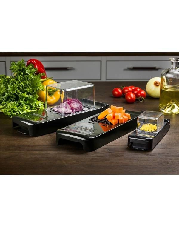 Jedną ręką przy pomocy ostrzy posiekasz warzywa na sałatkę lub ziemniaki na domowe frytki.