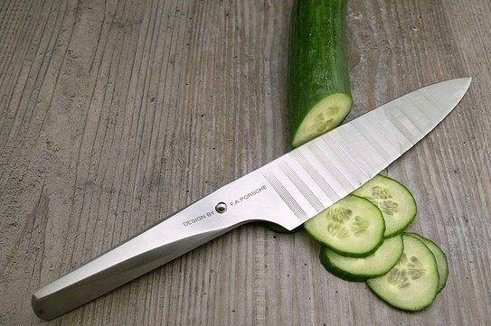 Karbowany nóż szefa kuchni Type 301 japońskiej marki Chroma.Noże zaprojektowane przez Ferdynanda Porsche, docenione przez najlepszych kucharzy na świecie.