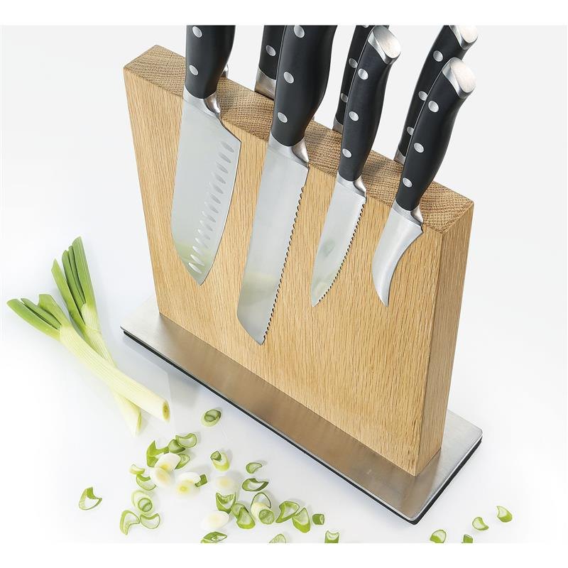 Drewniany, magnetyczny blok na noże o różnej długości . Wygodny i bezpieczny sposób na przechowywanie noży z dbałością o ostrza.