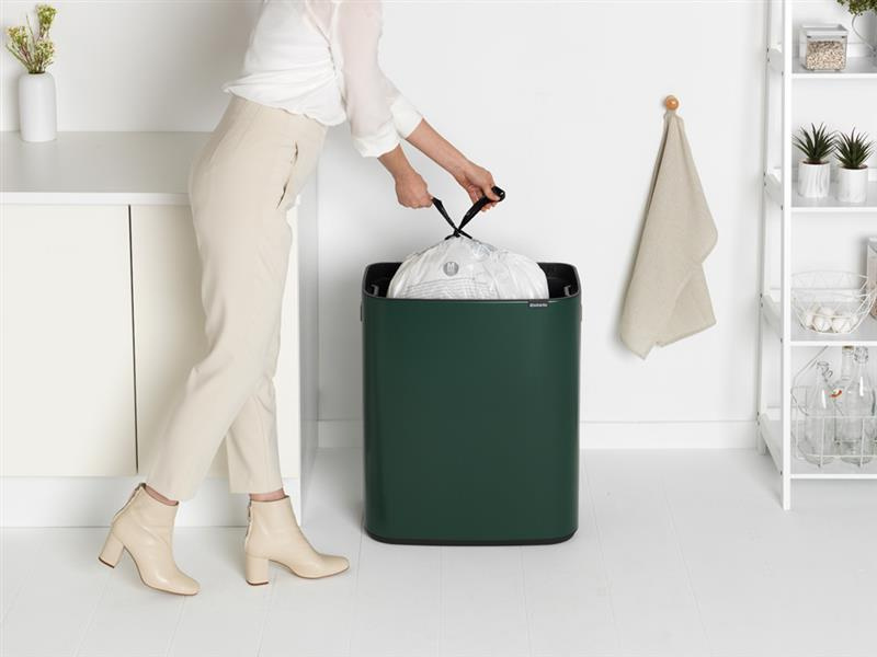 Do jednokomorowego kosza BO idealnie pasują worki na śmieci Brabantia z oznaczeniem M, o pojemności 60 litrów.