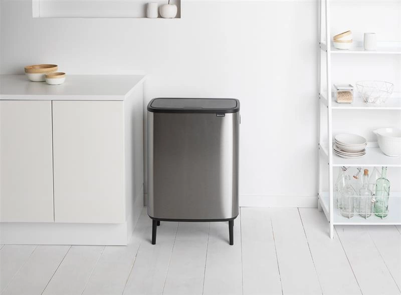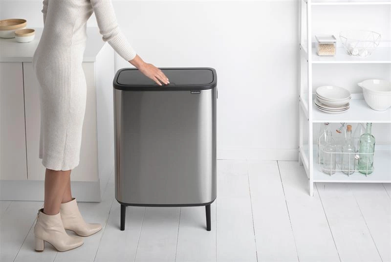 Cześć, jestem BO! Poznaj mnie bliżej. Kosz na śmieci BO Touch Bin dwukomorowy, o pojemności 60 litrów. Seria koszy na śmieci BO to unikalne rozwiązanie gospodarowania odpadkami, ale również nowoczesny i elegancki mebel, który stanowić będzie element wyposażenia wnętrza. Kosz BO został zaprojektowany w Holandii i starannie wyprodukowany w fabryce Brabantia w Belgii. BO to wynik połączenia prawie 100 lat rzemiosła oraz najnowszych technologii. Sygnowany jest Brązowym Certyfikatem Cradle to Cradle® - aby go otrzymać, produkty muszą spełnić bardzo surowe kryteria związane z bezpieczeństwem dla środowiska i zdrowia człowieka. Kosz BO występuje w trzech wersjach - jedno, dwu i trzykomorowej dla wygody i lepszej segregacji śmieci. Zastosowany w pokrywie mechanizm otwierający Touch Bin działa na zasadzie lekkiego dotknięcia dłonią. Dzięki odpowiedniemu wyprofilowaniu, kosz przylega do ściany lub innych mebli. Posiada odpowiednio dopasowaną wysokość, by ograniczyć konieczność schylania się, aby wyrzucić śmieci. Kosz jest łatwy w umyciu, wystarczy wyjąć plastikowe wiaderko. Do jednokomorowego kosza BO idealnie pasują worki na śmieci Brabantia z oznaczeniem M.