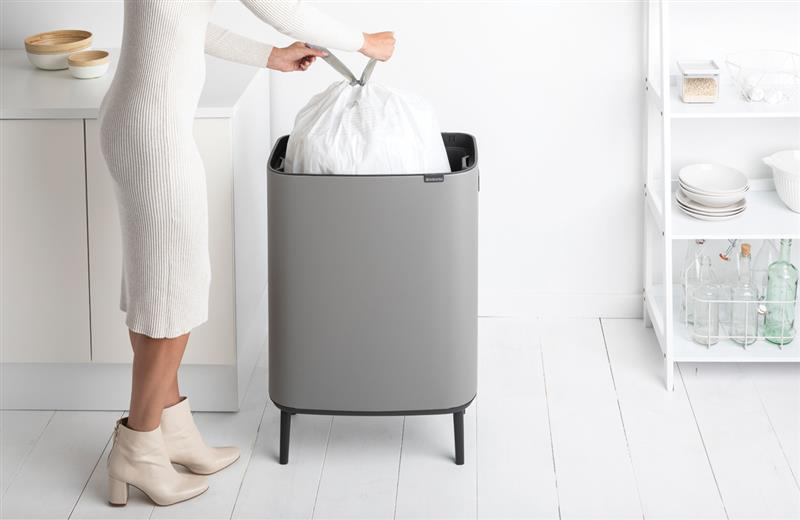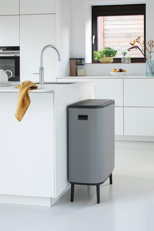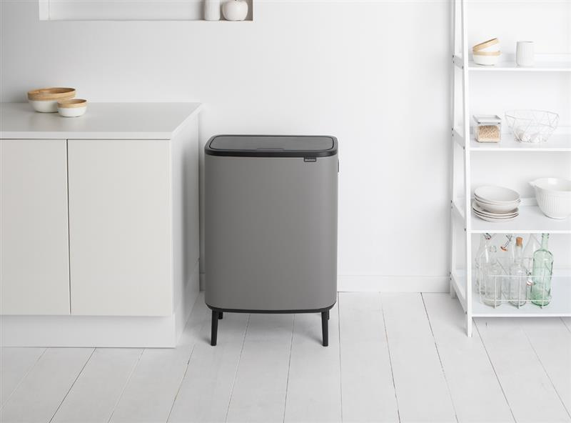 Cześć, jestem BO! Poznaj mnie bliżej. Kosz na śmieci BO Touch Bin dwukomorowy, o pojemności 60 litrów. Seria koszy na śmieci BO to unikalne rozwiązanie gospodarowania odpadkami, ale również nowoczesny i elegancki mebel, który stanowić będzie element wyposażenia wnętrza. Kosz BO został zaprojektowany w Holandii i starannie wyprodukowany w fabryce Brabantia w Belgii. BO to wynik połączenia prawie 100 lat rzemiosła oraz najnowszych technologii. Sygnowany jest Brązowym Certyfikatem Cradle to Cradle® - aby go otrzymać, produkty muszą spełnić bardzo surowe kryteria związane z bezpieczeństwem dla środowiska i zdrowia człowieka. Kosz BO występuje w trzech wersjach - jedno, dwu i trzykomorowej dla wygody i lepszej segregacji śmieci. Zastosowany w pokrywie mechanizm otwierający Touch Bin działa na zasadzie lekkiego dotknięcia dłonią. Dzięki odpowiedniemu wyprofilowaniu, kosz przylega do ściany lub innych mebli. Posiada odpowiednio dopasowaną wysokość, by ograniczyć konieczność schylania się, aby wyrzucić śmieci. Kosz jest łatwy w umyciu, wystarczy wyjąć plastikowe wiaderko. Do jednokomorowego kosza BO idealnie pasują worki na śmieci Brabantia z oznaczeniem M.