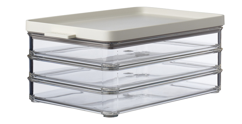 Pojemnik składa się z 3 części a trzy poziomy pozwalają zaoszczędzić i zagospodarować miejsce w lodówce.