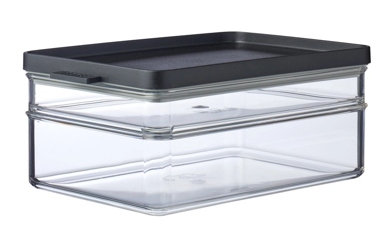Nowoczesny i praktyczny pojemnik na wędliny i sery holenderskiej marki Mepal z serii Omnia Nordic Black, który składa się z dwóch poziomów o pojemnościach 1200 i 500 ml. Przezroczyste ścianki pozwalają kontrolować zawartość bez konieczności otwierania pojemnika. Możliwość piętrowego ułożenia pomaga zaoszczędzić i zagospodarować miejsce w lodówce czy też szafce kuchennej. Szczelna pokrywa z wypustką ułatwiającą otwieranie, zapobiega rozproszeniu zapachów na inne produkty, a hermetyczne uszczelnienie przedłuża przydatność żywności do spożycia. Pojemniki łączą nowoczesny design z praktycznym zastosowaniem, a szeroka gama kolorów oraz rozmiarów produktów z serii Omnia pozwala mądrze zorganizować kuchenną przestrzeń, jednocześnie będąc atrakcyjnym akcentem wizualnym. Higieniczne i łatwe w czyszczeniu - możliwość mycia w górnym koszu zmywarki. Wszystkie produkty Mepal wolne są od BPA oraz wykonane z materiałów nieszkodliwych dla zdrowia. Wyprodukowany w Holandii.